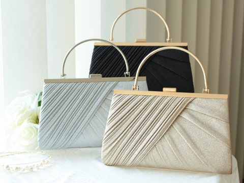 大人の女性には、質感の良いサテン地や、繊細なレース使いのバッグが似合います。シャンパンベージュやシルバーは、どんなドレスにも合わせやすく、顔周りを明るく見せてくれます。