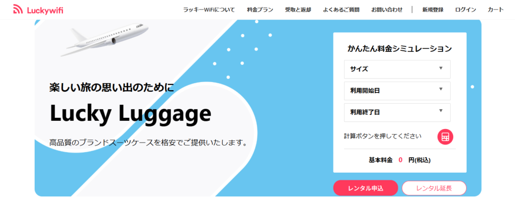 | 補償内容 | 通常利用での破損は無料で補償。航空会社の破損も対応。紛失・盗難時は警察への届け出を条件に、自己負担金なしで補償(一部プランを除く)。安心補償パックの追加も可能。 |
