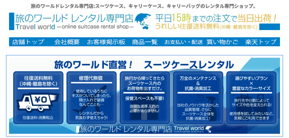 | 取り扱いブランド | 約20ブランド200種類以上 リモワ、サムソナイト、プロテカ、ゼロハリバートン、グローブトロッカーなど |
